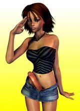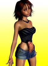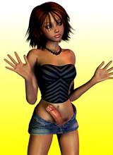Big shemale dick popped out!The little shorts this sexy 3D shemale is wearing are simply too small to contain her cock. When she sees something hot she gets a boner and there's nothing to be done about it. Her dick is raging and you're simply going to have to watch and enjoy the show. Something tells me you won't have any problem doing so. The best thing about the rendered gallery is that her dick looks so realistic. The cockhead even glistens like there's a little bit of wetness gathering there from her being so aroused.Visit 3D Shemales for more! | ||||||